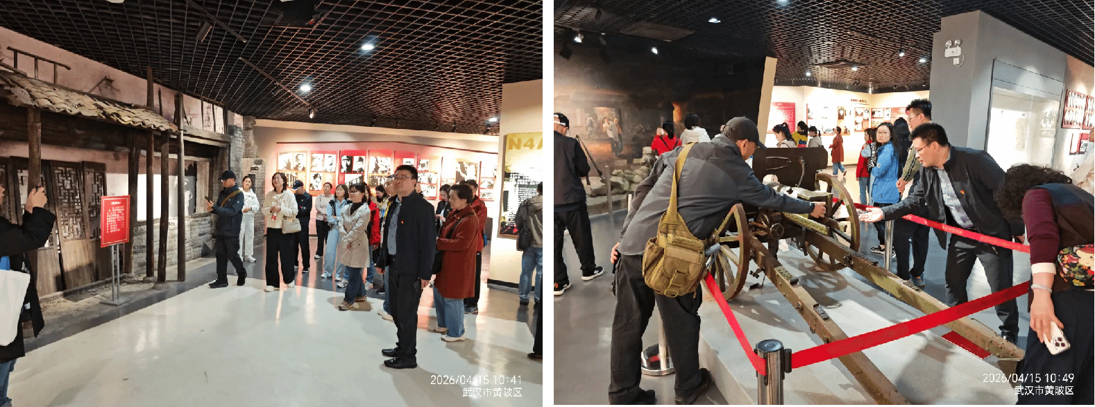 活动伊始,全体党员集体合影留念,离退休支部的老党员们还单独留影,记录下这次珍贵的红色之行。随后,在专业讲解员的带领下,大家走进红色陈列馆,凝神聆听那段波澜壮阔的革命往事。1940年,李先念率新四军豫鄂挺进纵队进驻姚家山,与陈少敏等胜利会合;1941年皖南事变后,部队改编为新四军第五师,司政机关、鄂豫边区党委及行政公署设于此地,成为华中敌后游击战争的指挥中枢。1941至1946年间,李先念、郑位三、任质斌、陈少敏等老一辈革命家扎根姚家山,运筹帷幄,带领边区军民在日军、伪军和国民党顽固派的多方夹击下,顽强作战1260余次,抵御近15万日军、8万余伪军的疯狂进攻,最终建成横跨五省66县的广阔抗日根据地——用热血与坚守铸就了不朽的红色丰碑。