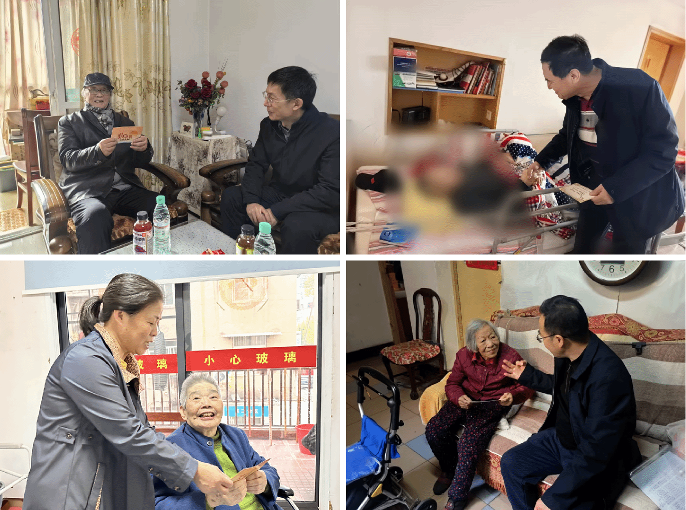离退休工作处班子成员带队,分组走访慰问离休干部、退休老领导、困难老党员、重疾及孤寡独居老同志。无论是在养老院、医院,还是家中,老同志们的脸上都洋溢着温暖笑容。累计走访慰问120余人,切实将学校的关怀送至心坎。